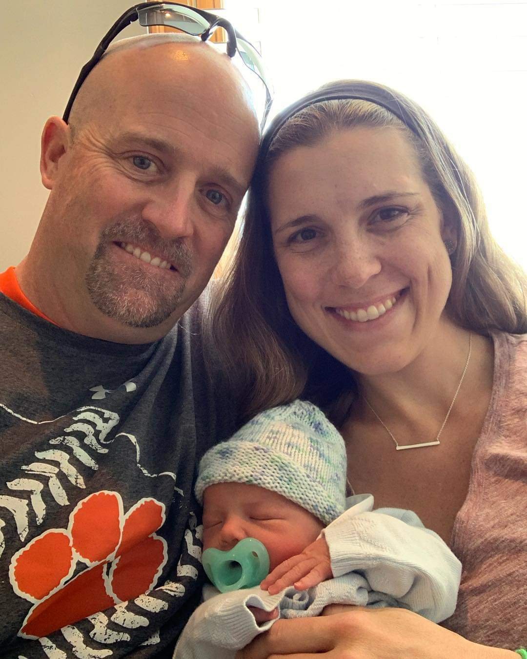 As I touch his sweaty neck.